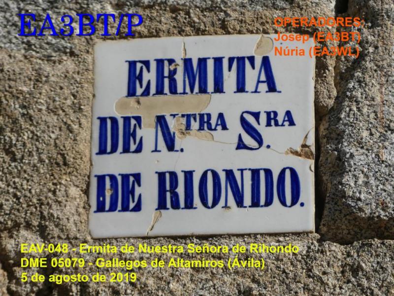 | NOMBRE ERMITA: | NUESTRA SEÑORA DE RIHONDO |
